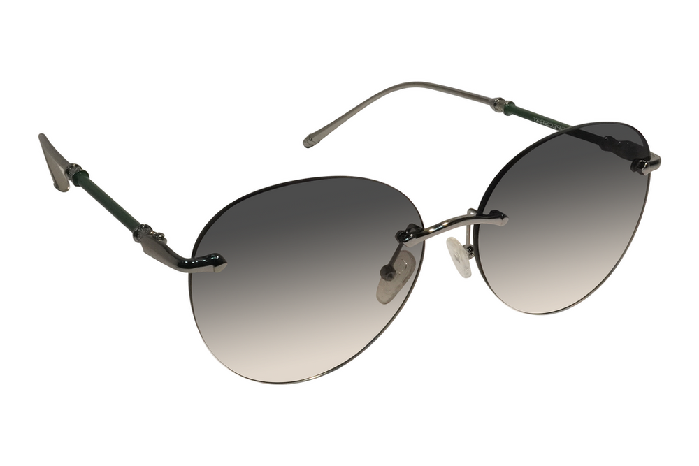 Green Round Rim Less Metal Sunglasses For Women